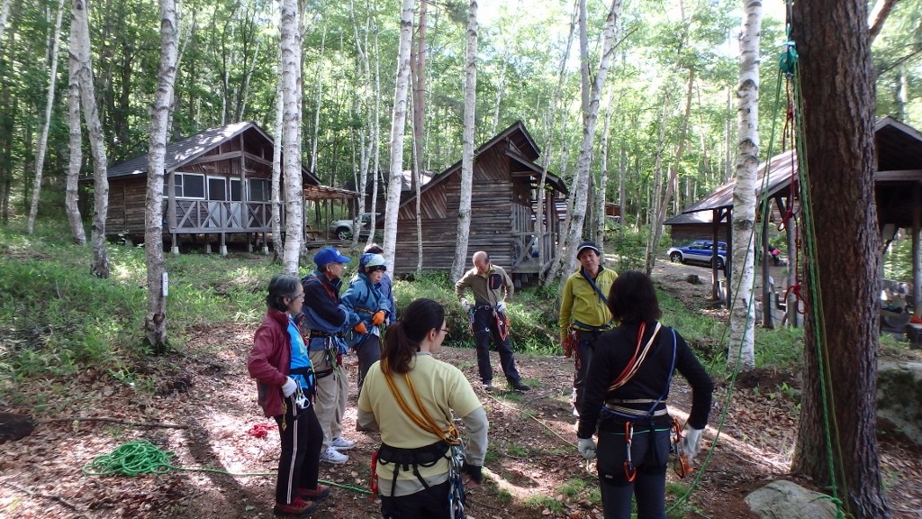 3 内容   一般的な登山道の危険個所でロープを使用して安全に通過や確保の方法を行います。